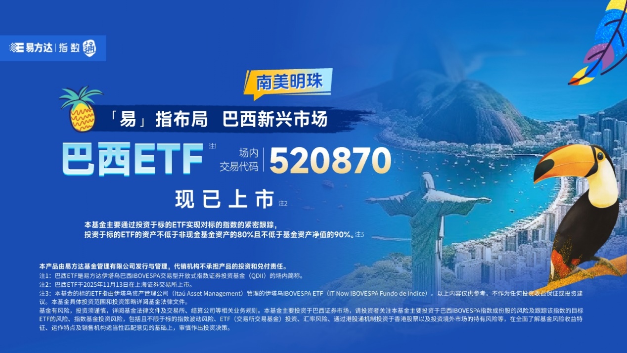 易方达伊塔乌巴西IBOVESPA交易型开放式指数证券投资基金(QDII)(场内交易代码:520870,场内简称:巴西ETF,扩位证券简称:巴西ETF)于2025年11月5日成立,募集份额合计299,977,164.00份,于2025年11月13日上市...